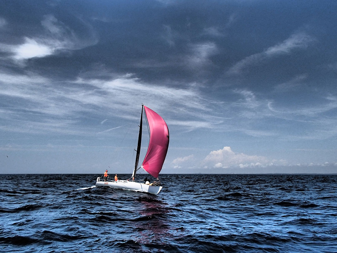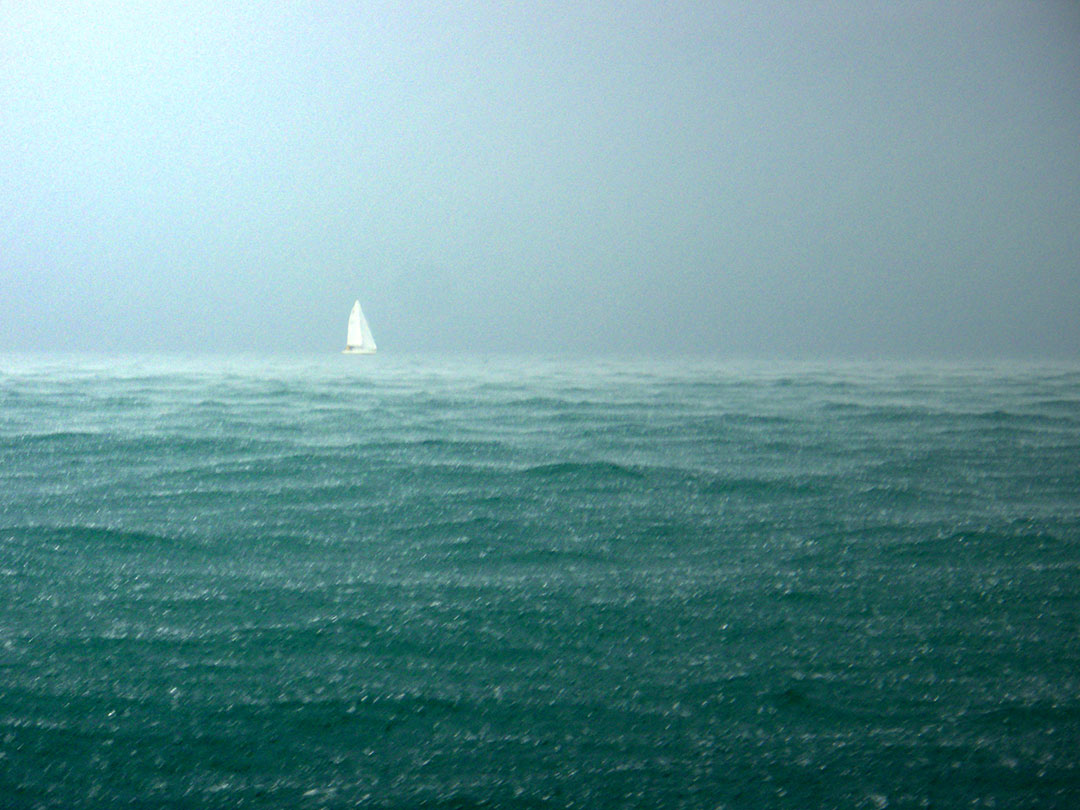 I am still looking for the year but anyone on it has to remember the Long Point Bay race that started in good air but ran into the strongest blow to ever hit the fleet. It came during the first leg from Dover to Turkey Point. One thing I will always remember about Doc Kemble was an unerring sense about weather. The storm struck from astern and blew up to around 80 mph. True to his nature Caprice was only under a small storm jib when it struck. The radio was heavy with calls but other than hearing of a boat being driven aground I don’t recall any serious incidents. The storm had blown through by the time we got off the sleigh ride and turned back to the east. That afternoon the fleet at the PDYC look like one huge laundry line.